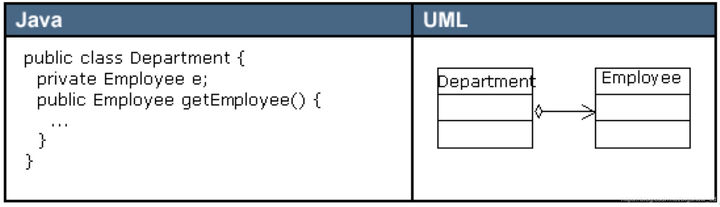 - 聚合(Aggregation)是关联关系的一种特例,它体现的是整体与部分的拥有关系,即 “has a” 的关系。此时整体与部分之间是可分离的,它们可以具有各自的生命周期,部分可以属于多个整体对象,也可以为多个整体对象共享,所以聚合关系也常称为共享关系。例如,公司部门与员工的关系,一个员工可以属于多个部门,一个部门撤消了,员工可以转到其它部门